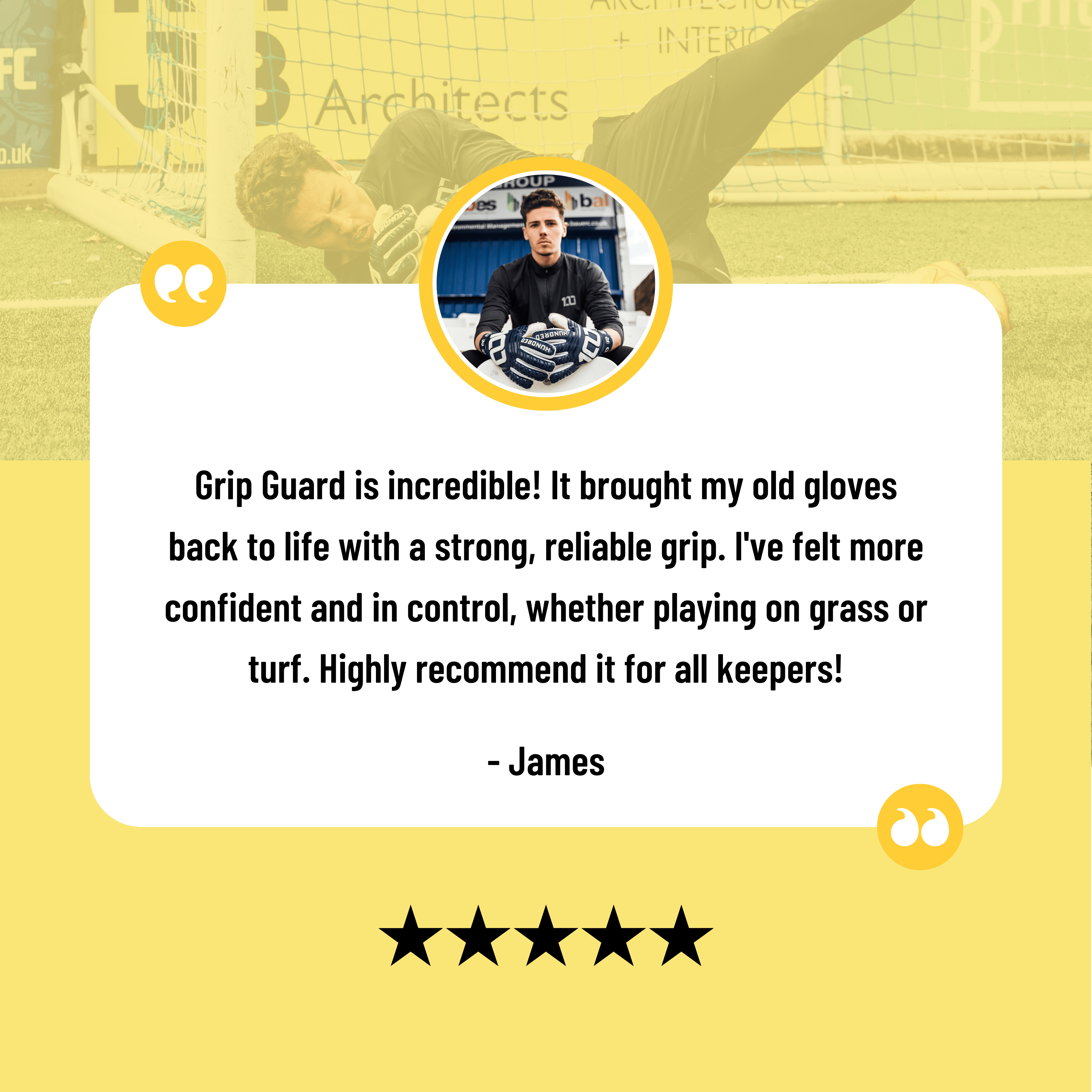 "I was introduced to Grip Charge by another goalkeeper, and I haven't looked back since. The enhanced grip it provides is exactly what I need to revive my gloves"