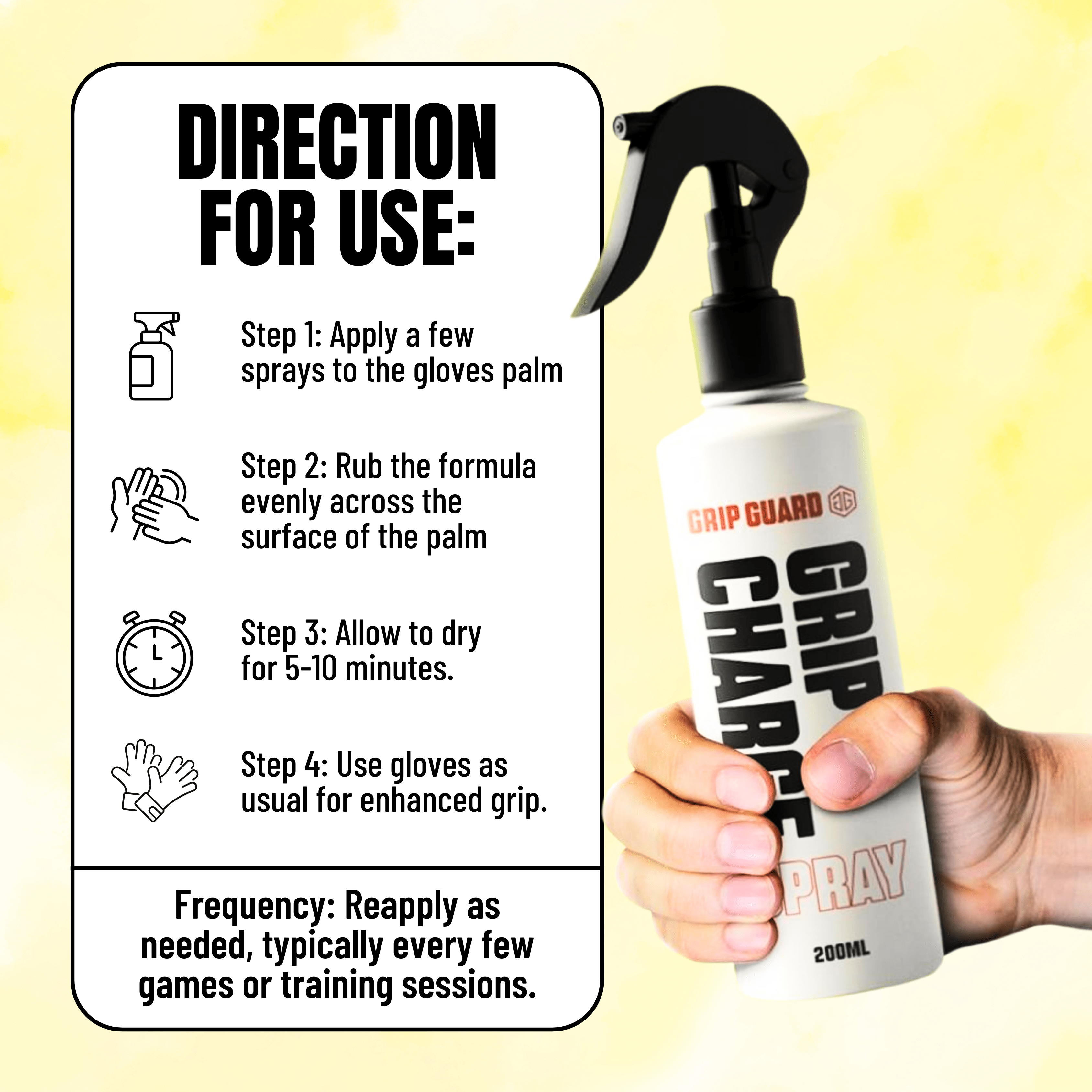 For best results, apply GRIP CHARGE before each game or training session. It can also be applied during halftime or as needed for extra grip.